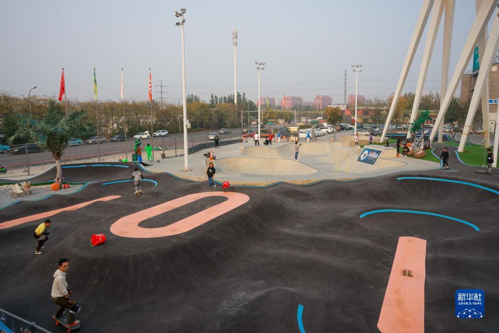 這是10月28日拍攝的天津市西青區的一處滑板公園。新華社記者 孫凡越 攝