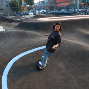 戴瑋萱是一名酷愛戶外運動的“95后”,也是這家集碗池、泵道于一體的戶外滑板公園的老板。