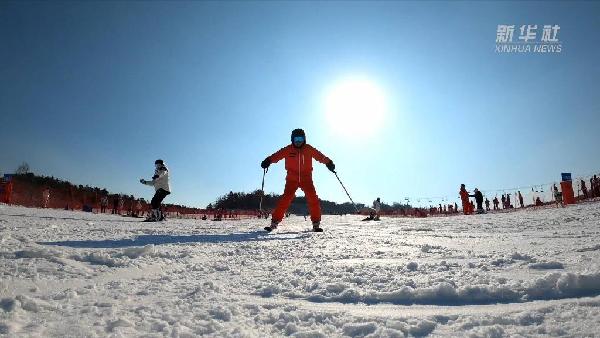在青島西海岸新區(qū)藏馬山滑雪場,元旦期間,來學滑雪的游客和市民絡繹不絕,而且以青年人居多。