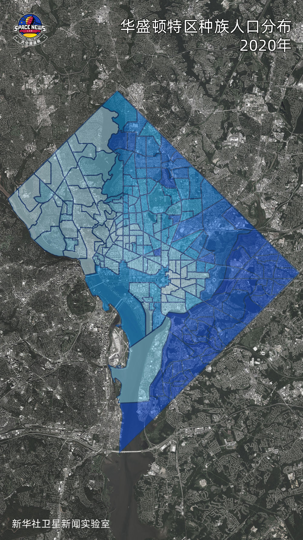 在紐約,在底特律,在費城……通過2020年人口普查數據能夠看到,每一座美國城市幾乎都有一顆“深色心臟”,或者存在華盛頓特區這樣截然分明的對立。