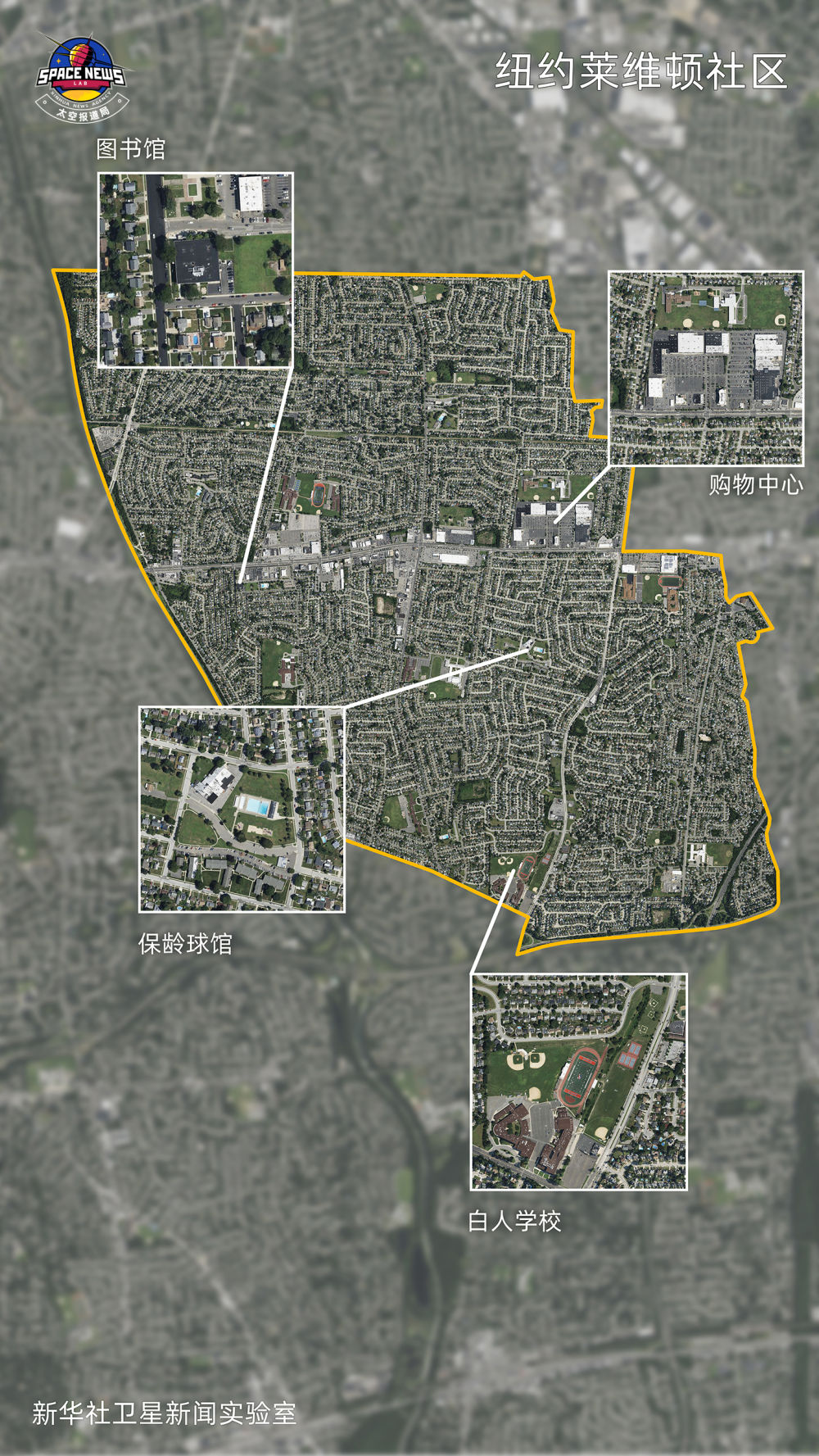 跨過上述兩條河流,是分布在郊區的小城鎮和大型居住區。幾乎在美國任何一座城市,白人社區和以黑人為主的有色人種社區外觀差異明顯,足以被衛星識別。