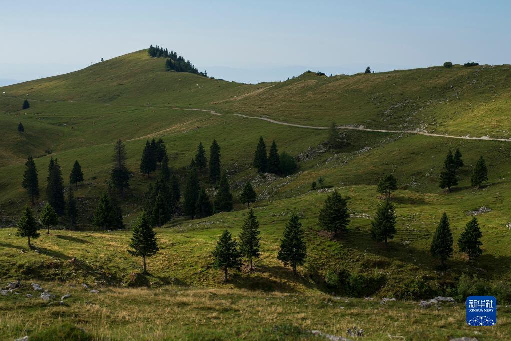 這是9月8日在斯洛文尼亞拍攝的維利卡普拉尼那高地牧場景色。