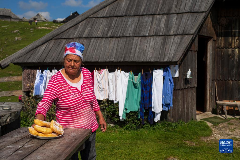 9月8日,斯洛文尼亞維利卡普拉尼那高地的一名牧民將傳統面點“Flancati”端上餐桌。