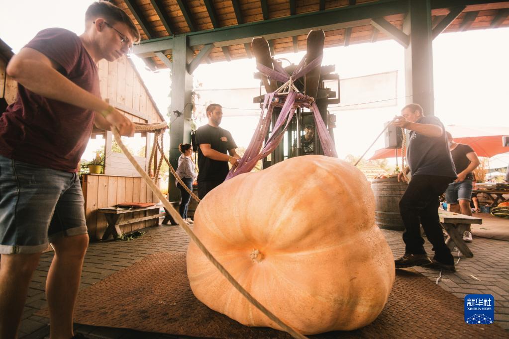 近日,為慶祝南瓜豐收,位于德國科隆市附近的洛馬爾鎮(zhèn)舉辦傳統(tǒng)南瓜節(jié)。趣味南瓜稱重比賽成為節(jié)日期間的重頭戲。據(jù)德國當?shù)孛襟w報道,來自德國、比利時等地的南瓜種植戶帶著各自培育而成的優(yōu)質(zhì)南瓜前來參賽,獲勝者可獲得豐厚獎金。