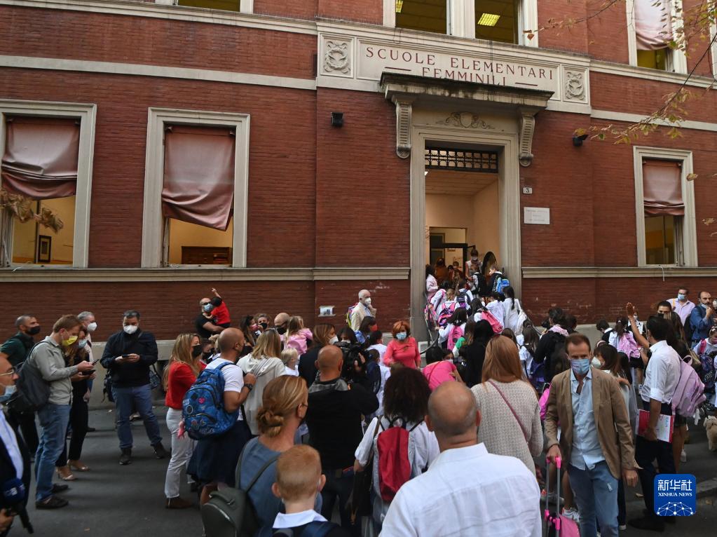 9月13日,學生在意大利博洛尼亞進入學校。9月13日后,意大利所有大區學校將陸續開學。根據意教育部公布的全國學校防疫措施,教職員工進入校園必須持有“綠碼”。