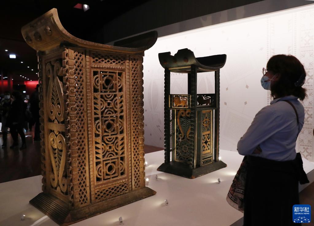 10月28日,一名女子在法國巴黎凱布朗利博物館參觀即將歸還貝寧的文物。