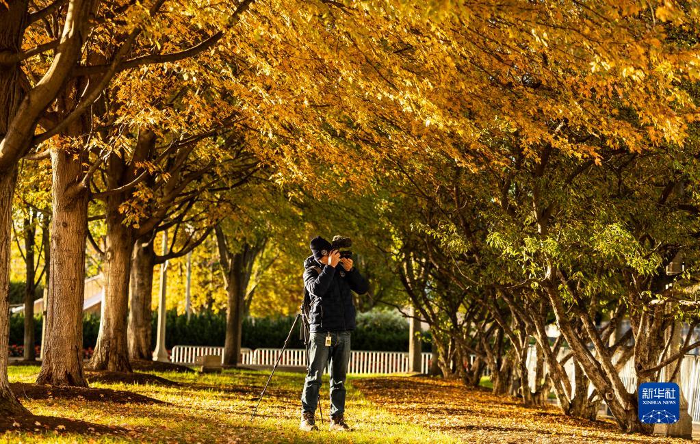 11月2日,一名攝影師在美國芝加哥拍攝秋景。