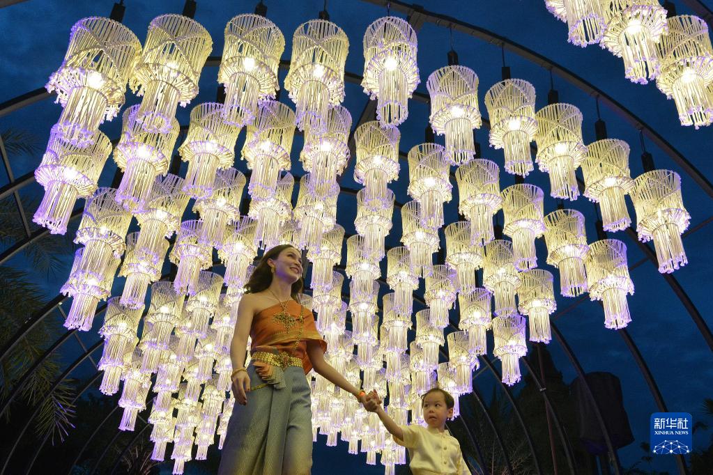 11月8日,游客在泰國北欖府舉行的國際燈籠美食節預展活動上觀賞燈籠。