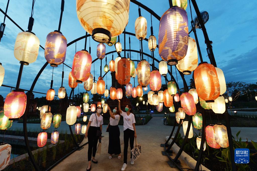 11月8日,游客在泰國北欖府舉行的國際燈籠美食節預展活動上觀賞燈籠。