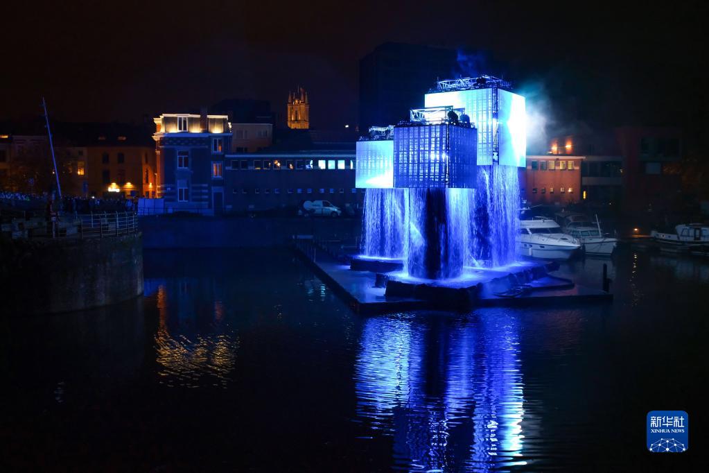 這是11月11日在比利時根特燈光節上拍攝的燈光藝術作品。