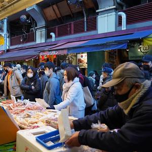 12月28日,人們在日本東京阿美橫町購買促銷商品。