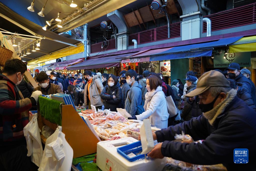 12月28日,人們在日本東京阿美橫町購買促銷商品。