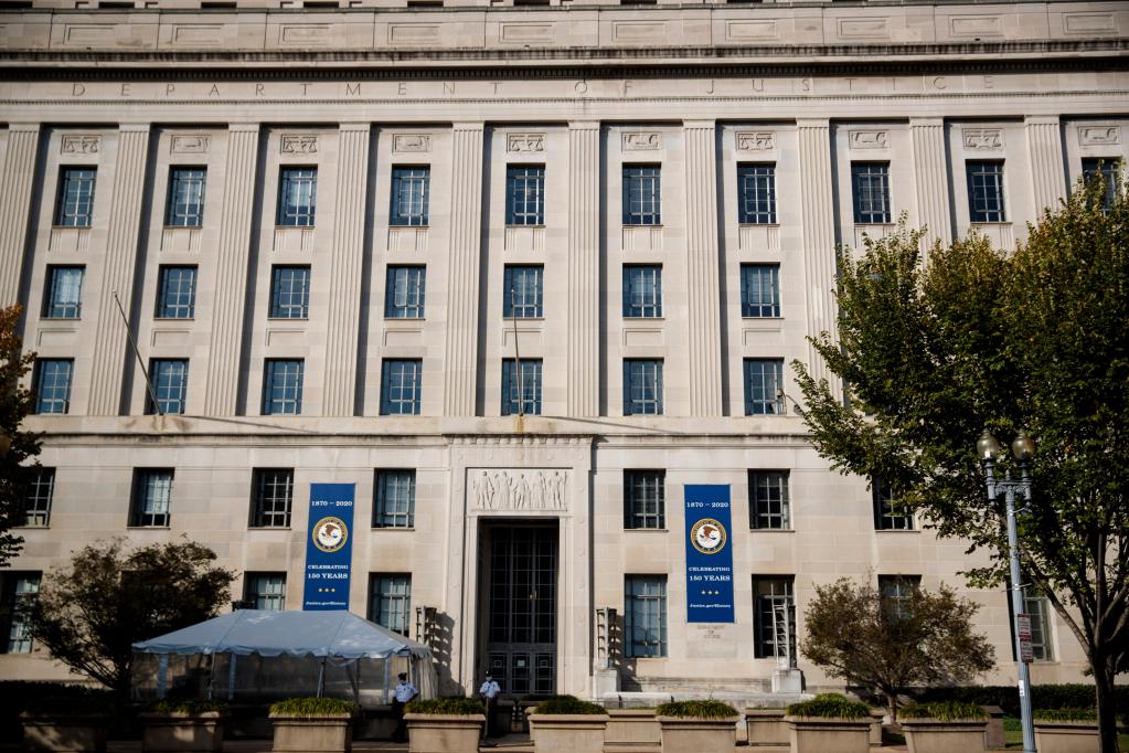 2020年10月20日在美國華盛頓拍攝的美國司法部大樓。(新華社發,沈霆攝)
