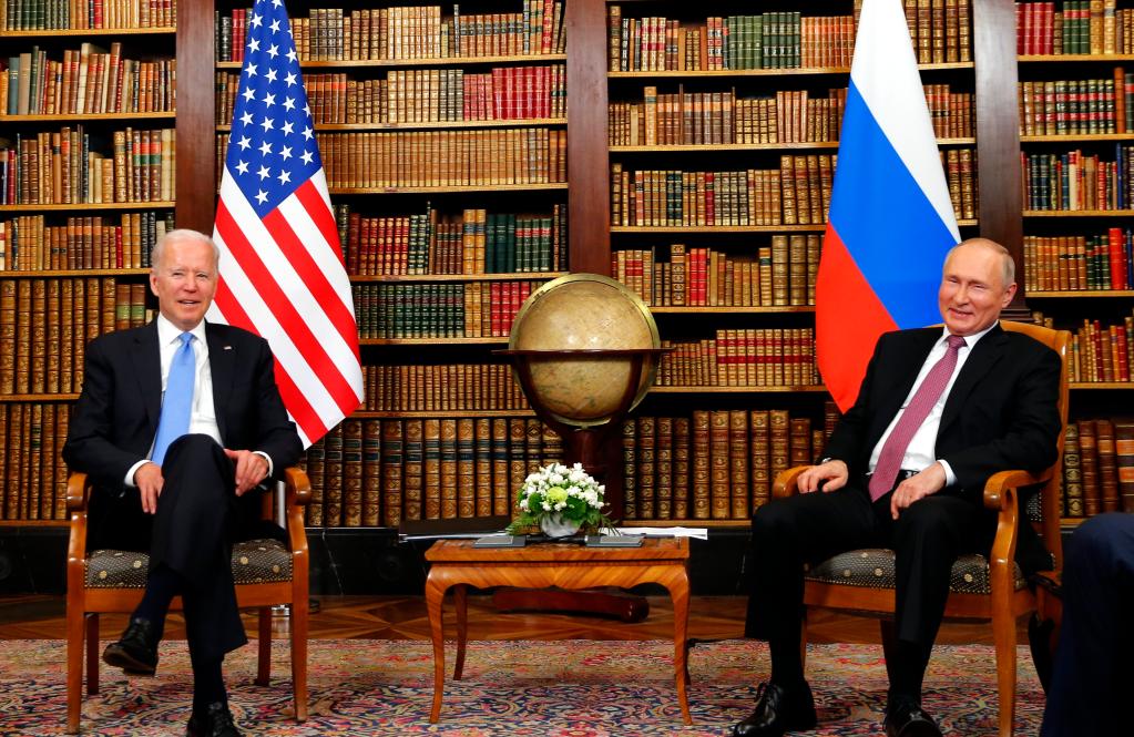2021年6月16日,美國總統拜登(左)和俄羅斯總統普京在瑞士日內瓦的拉格朗熱別墅舉行會晤。(新華社發,Pool圖片,丹尼斯·巴利布斯攝)