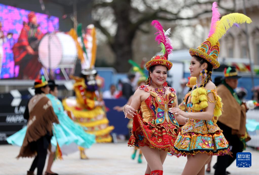 當日,倫敦舉行新年游行活動。由于疫情影響,新年游行活動的現場觀眾人數受到限制。