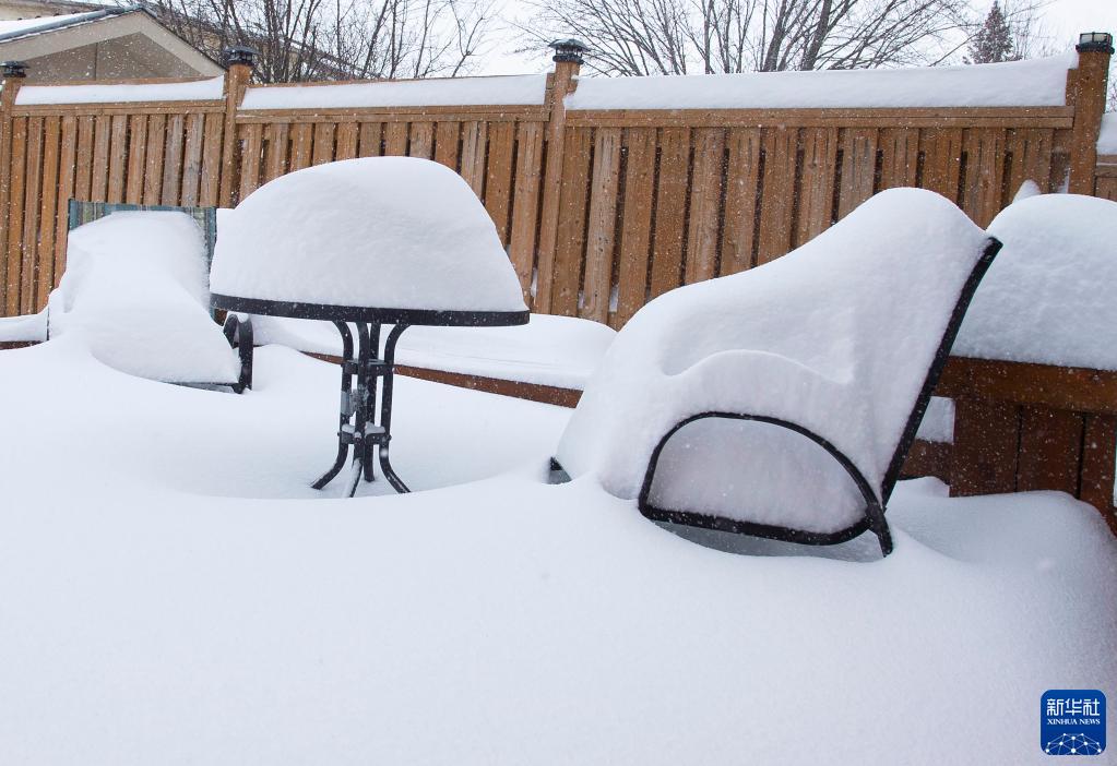 這是1月17日在加拿大大多倫多地區米西索加拍攝的一戶人家院中積雪的桌椅。