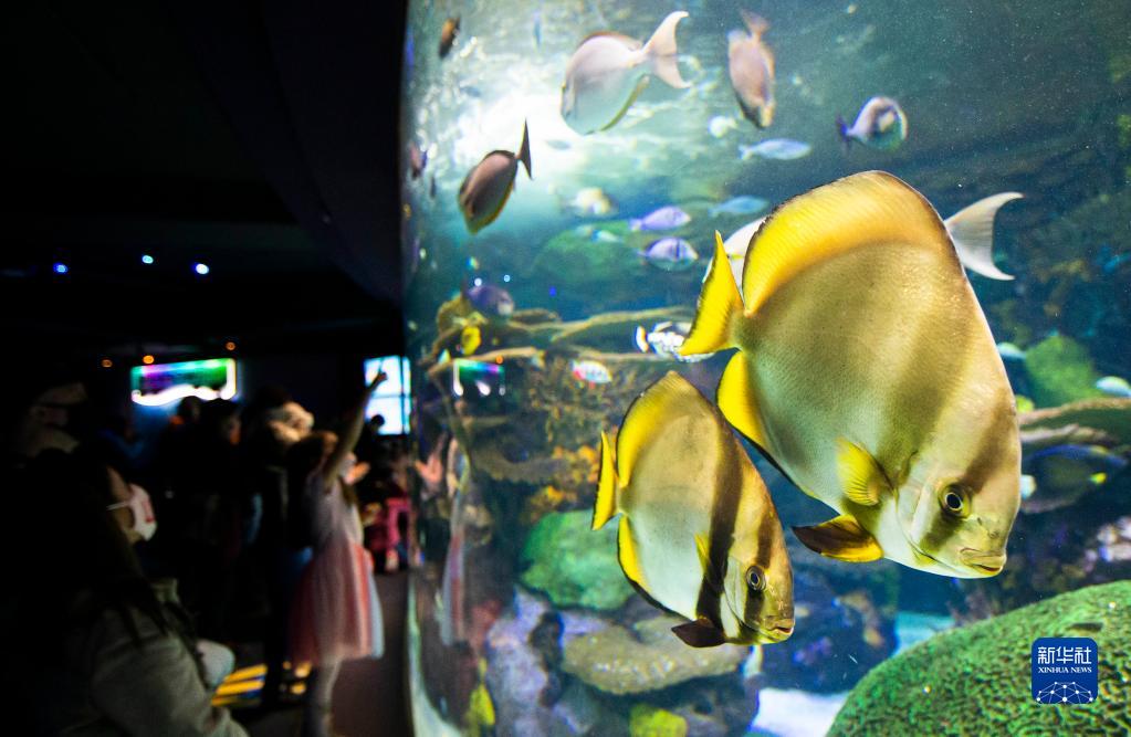 2月21日,游客在加拿大多倫多的里普利水族館內參觀。