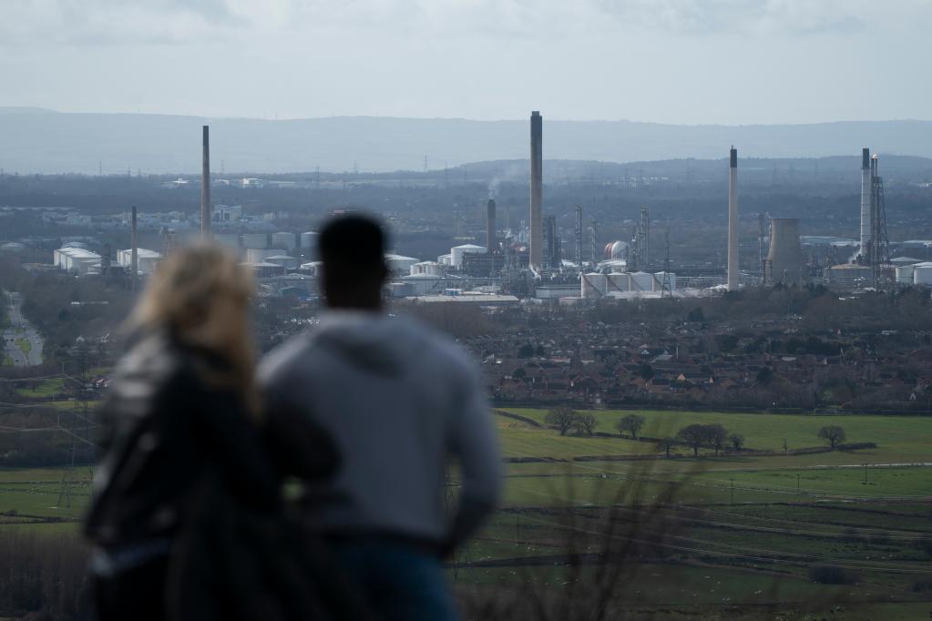 這是2022年3月17日在英國埃爾斯米爾港拍攝的一家煉油廠。新華社發(喬恩·休珀攝)