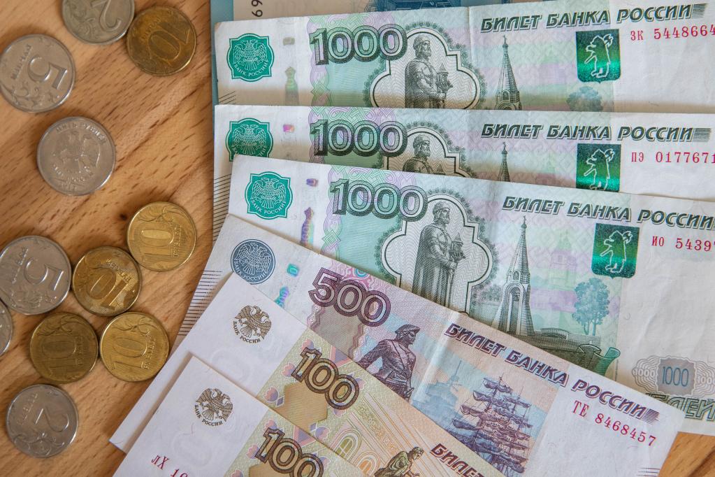 這是4月2日在俄羅斯首都莫斯科拍攝的盧布紙幣和硬幣。新華社記者 白雪騏 攝