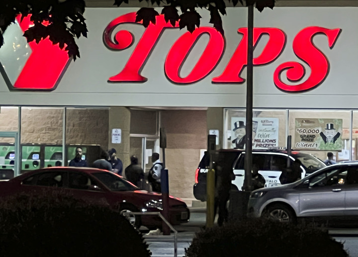 5月15日凌晨,警察在美國紐約州布法羅市的槍擊案現場工作(手機拍攝)。(新華社發,張杰攝)