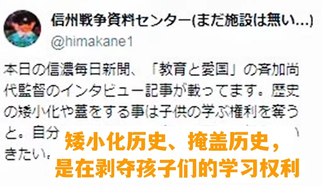 還有人留言:“如果不接受真實(shí)正確的歷史教育,孩子們將來(lái)可能在世界上做出令人深感恥辱的事。”