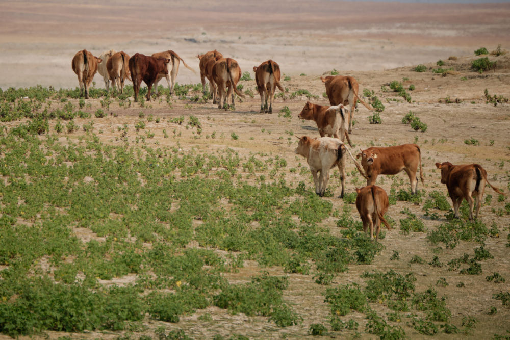 ↑8月16日,牛群在西班牙巴爾德卡尼亞斯水庫(kù)附近尋找水源。新華社記者 孟鼎博 攝