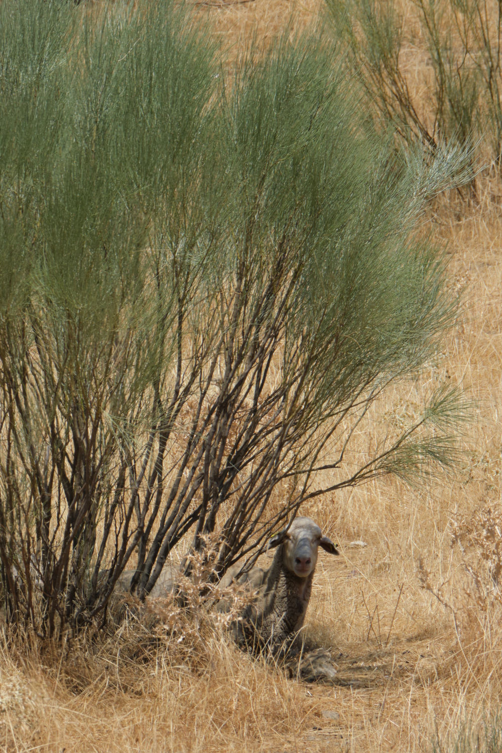 ↑8月15日,一只羊在西班牙錫哈拉水庫(kù)附近躲避陽(yáng)光。新華社記者 孟鼎博 攝