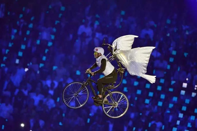 演員們伴隨著音樂在空中騎行