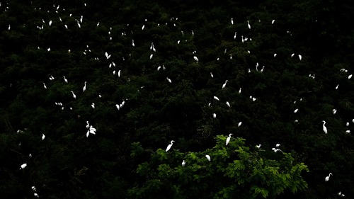 在位于鹽城東部沿海的大豐麋鹿國家級自然保護區,一群白鷺在樹頂棲息。新華社記者李響攝