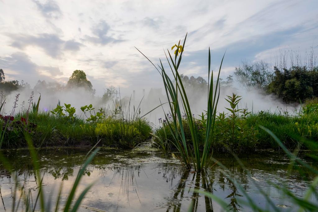 重慶市梁平區雙桂湖畔三峽竹博園內的小微濕地景觀。新華社記者劉潺攝