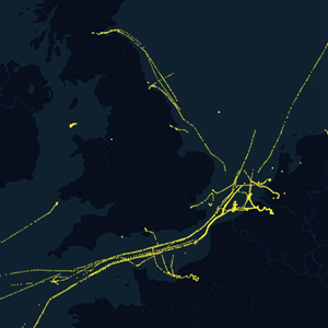 2022年9月26日,法國海岸,衛星和陸基接收站獲取的液化天然氣運輸船航行軌跡(船舶自動識別系統AIS)。這些船只大部分來自美國。在發起對俄羅斯的制裁后,美國以原價數倍的價格向法國和其他歐洲國家銷售天然氣。這使法國、德國經濟出現近千億歐元損失,也使埃克森美孚、雪佛龍等美國能源巨頭沖擊歷史最高利潤紀錄。