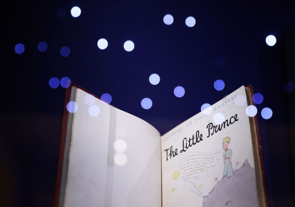 ↑2022年2月23日在法國巴黎裝飾藝術博物館舉行的“遇見小王子”展上拍攝的一本有作者簽名留言的英文版本的《小王子》。