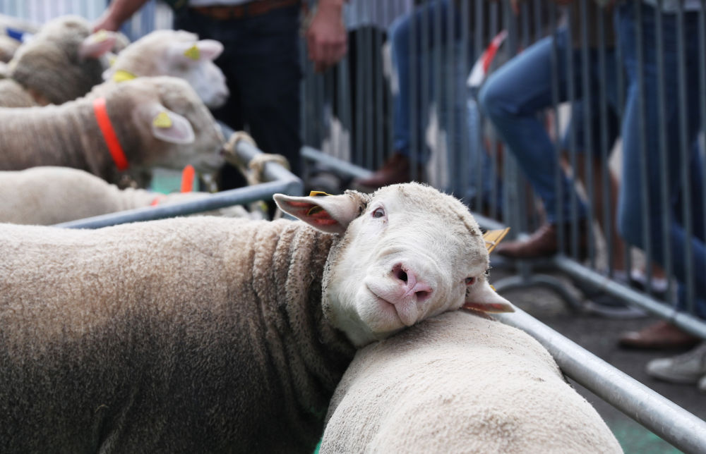 ↑2022年9月13日在法國雷恩畜牧業展覽會上拍攝的展出的綿羊。