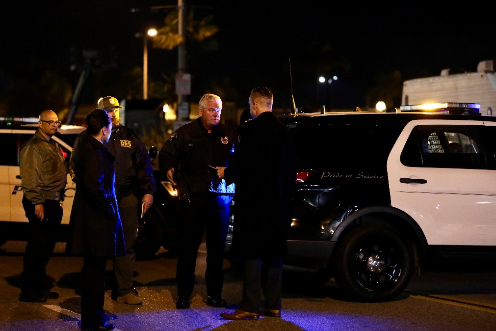 1月22日凌晨,警察在美國加利福尼亞州洛杉磯縣蒙特雷帕克市的槍擊事件現場工作。新華社發