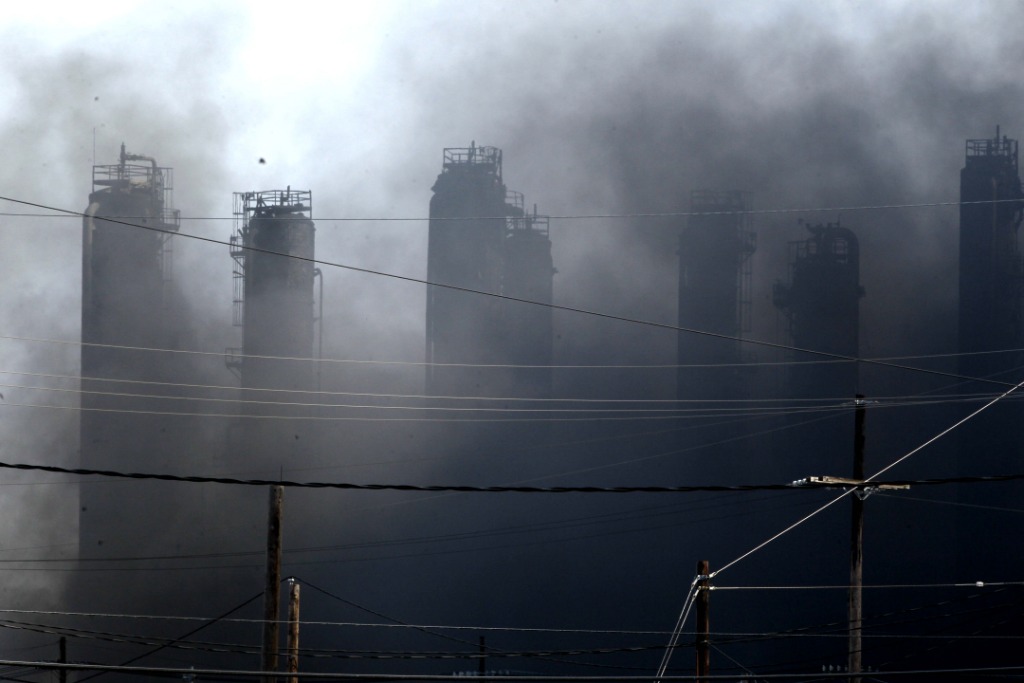 2019年11月27日,在美國得克薩斯州杰斐遜縣,發生爆炸的化工廠濃煙滾滾。新華社發(宋穹攝)
