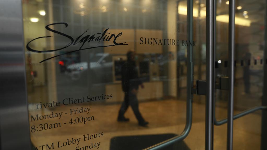 這是3月13日在美國紐約拍攝的一家簽名銀行的營業(yè)部。繼美國硅谷銀行關(guān)閉之后,美國財政部、美國聯(lián)邦儲備委員會和美國聯(lián)邦儲蓄保險公司3月12日發(fā)布聯(lián)合聲明宣布,總部位于紐約市的簽名銀行已被當?shù)乇O(jiān)管機構(gòu)關(guān)閉。(新華社記者 張墨成攝)