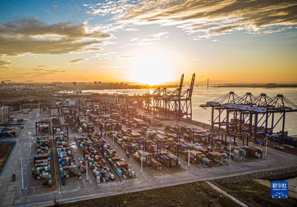 這是2021年5月26日在海南洋浦經(jīng)濟開發(fā)區(qū)拍攝的洋浦國際集裝箱碼頭(無人機照片)。新華社記者 蒲曉旭 攝