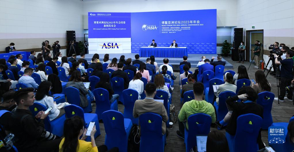 3月31日拍攝的博鰲亞洲論壇2023年年會閉幕新聞發(fā)布會現(xiàn)場。新華社記者 楊冠宇 攝