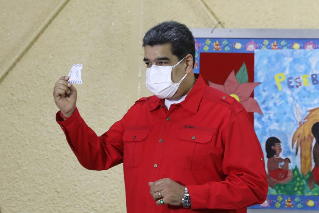 2021年11月21日,委內瑞拉總統馬杜羅在加拉加斯的一處投票站投票。新華社發