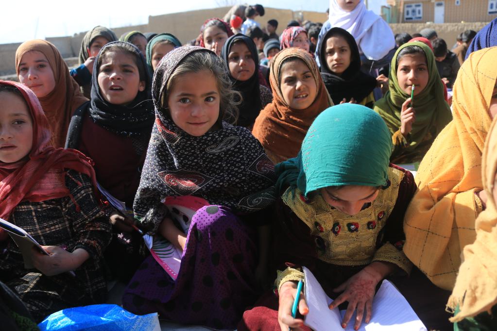 2023年2月23日,在阿富汗喀布爾,兒童們在一名年輕教師的免費(fèi)課堂上聽課。新華社發(fā)(塞夫拉赫曼·薩菲攝)
