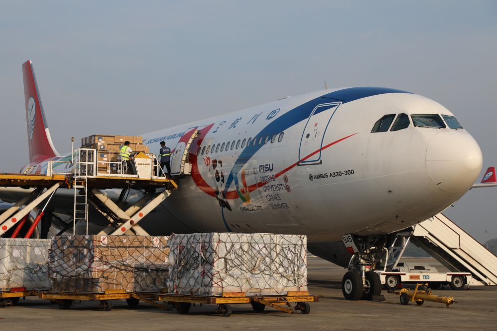 這是2023年1月19日在緬甸仰光國際機場拍攝的中國政府援助緬甸的新冠疫苗。新華社發(中國駐緬甸使館供圖)