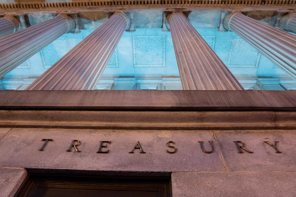 這是在美國首都華盛頓拍攝的財政部大樓。(新華社記者劉杰攝)