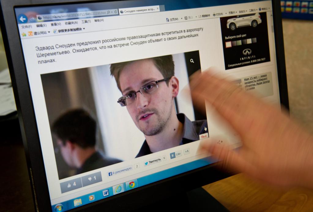 2013年7月12日,新聞工作者在俄羅斯首都莫斯科打開網頁瀏覽斯諾登的訊息。新華社記者姜克紅攝