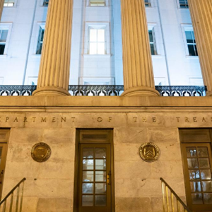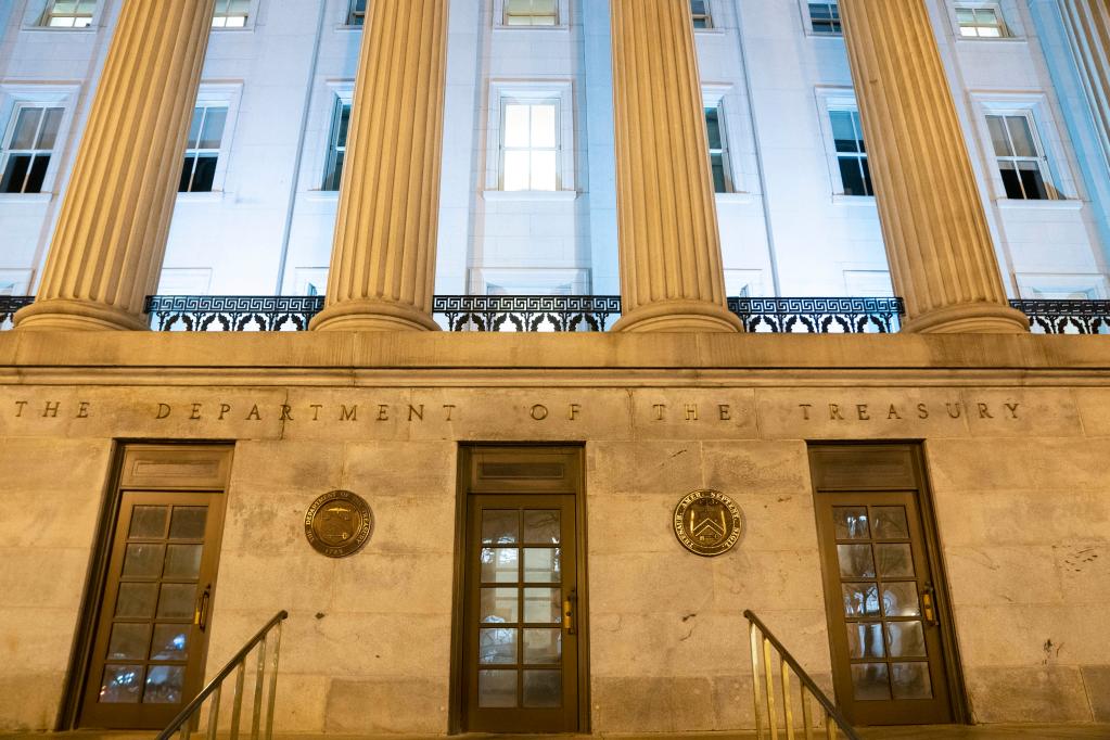 這是2月28日在美國首都華盛頓拍攝的美國財政部大樓。新華社記者劉杰 攝