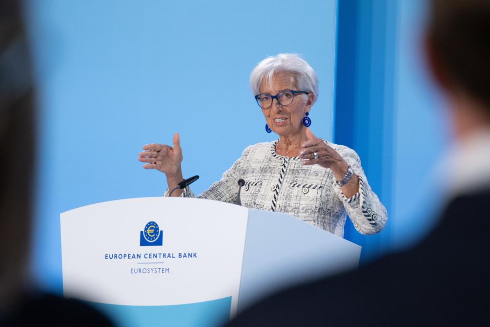 6月15日,歐洲中央銀行行長拉加德在德國法蘭克福歐洲央行總部舉行的新聞發(fā)布會(huì)上講話。(新華社發(fā),歐洲央行供圖)