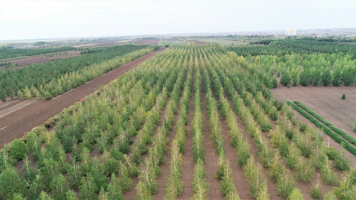 阿斯塔納周邊地區,大風肆虐,冬季極為寒冷,加上鹽漬化土地,植樹造林困難重重。新疆生地所的專家們扎根林田,針對當地的環境特點制定了專門應對措施。他們引進能適應當地環境的高抗逆樹苗品種,改造地形便于樹林成長,還用上了“種前假植”“蓋雪保護”“泥漿蘸根”等辦法,有效提升存活率。
