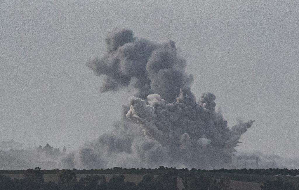 這張10月29日在加沙邊境以色列一側(cè)拍攝的照片顯示,加沙地帶北部區(qū)域被以軍襲擊后升起濃煙。新華社記者陳君清攝