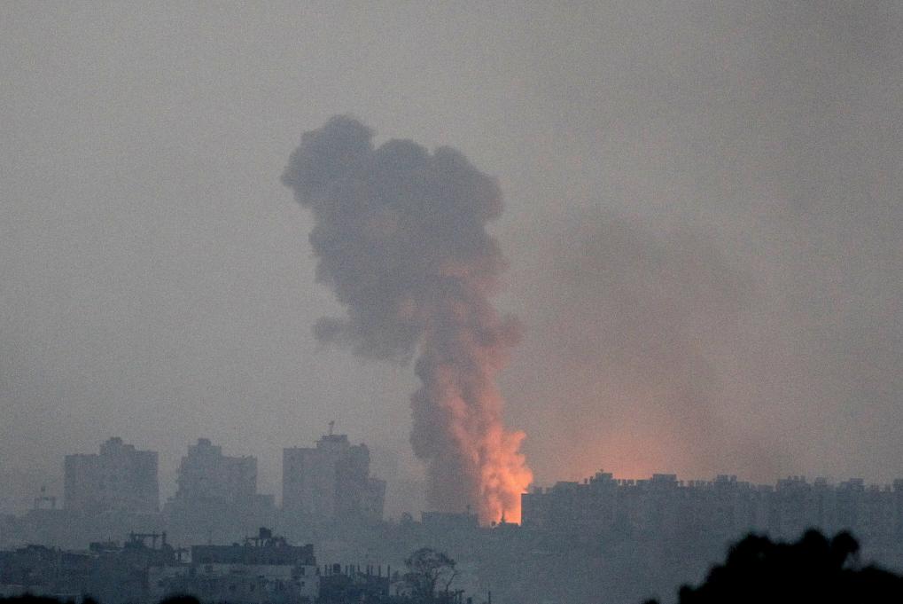 這張10月28日從加沙邊境以色列一側(cè)拍攝的照片顯示,加沙地帶北部遭以軍襲擊后升起濃煙。新華社發(fā)(伊蘭·阿薩亞格攝/基尼圖片社)