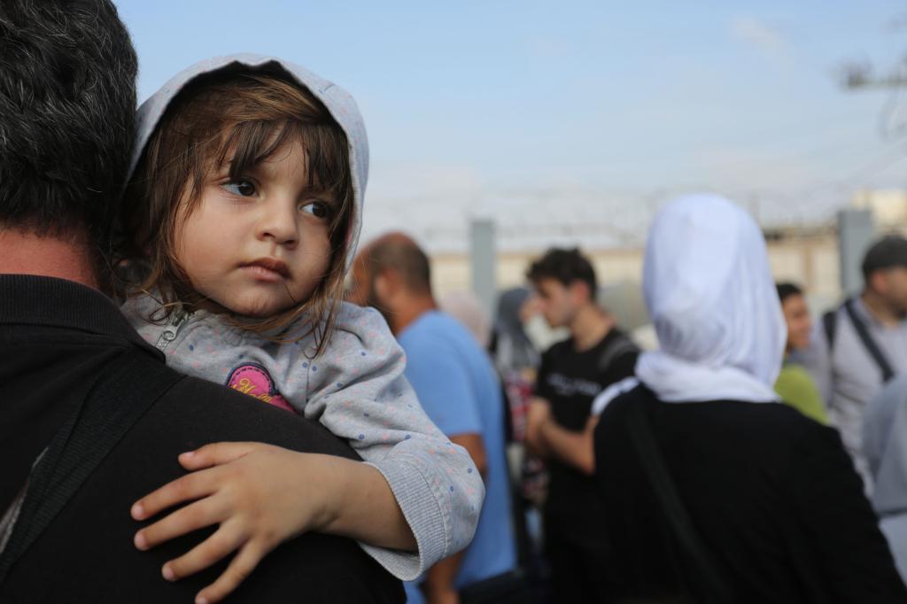 11月8日,人們在拉法口岸加沙一側等待前往埃及。新華社發(哈立德·奧馬爾攝)
