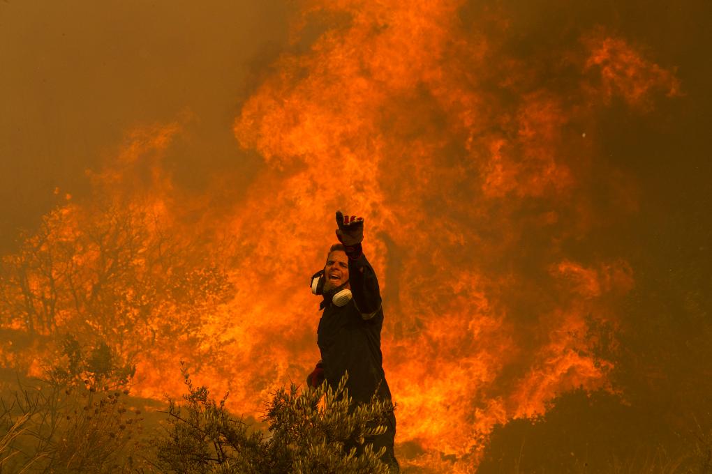 圖為2023年8月22日,消防員在希臘首都雅典附近的查西亞村滅火。新華社發(馬里奧斯·羅洛斯 攝)